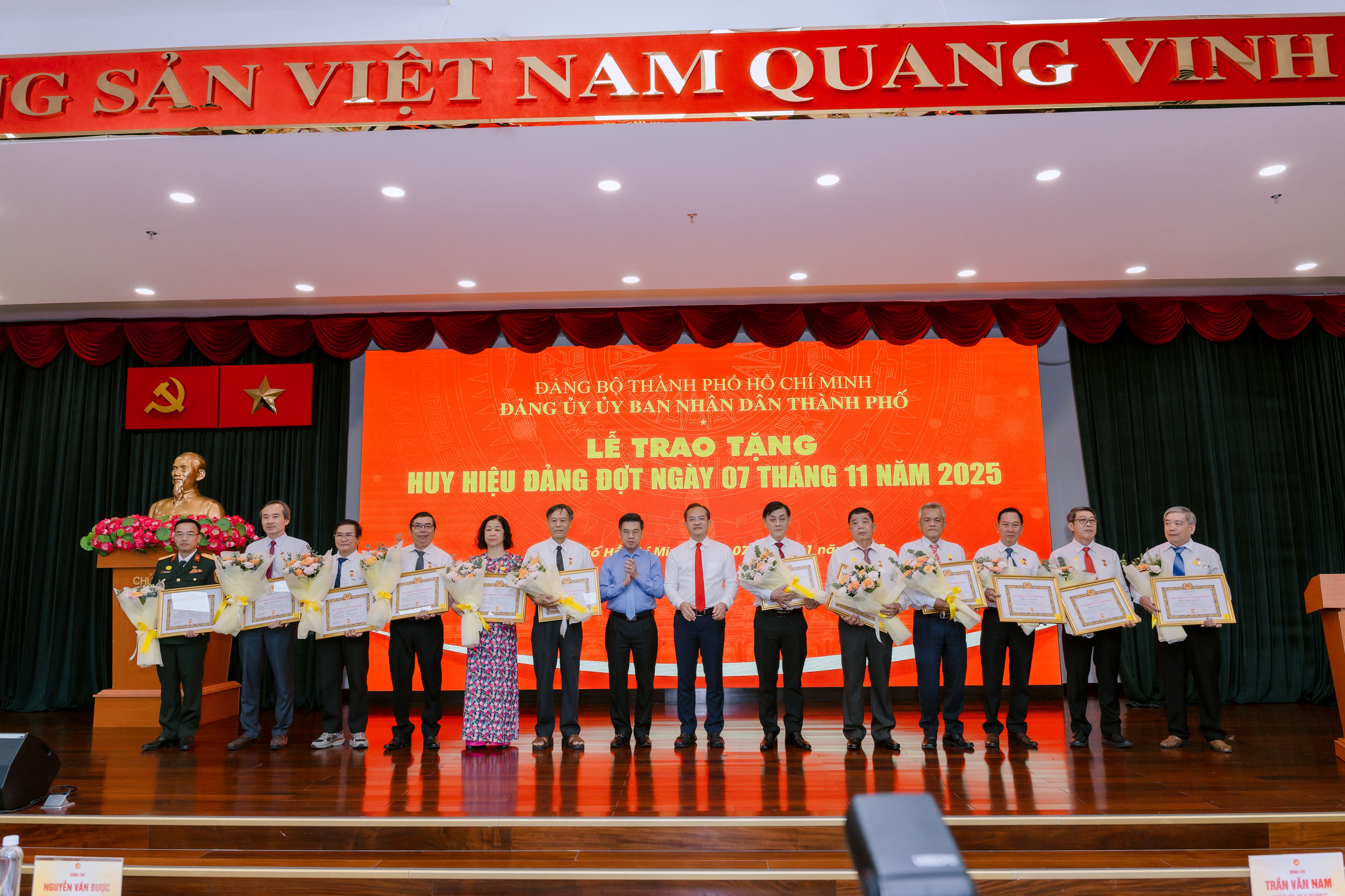 Lễ trao tặng Huy hiệu Đảng lần này được tổ chức trang trọng tại Hội trường Bảo Tàng Tôn Đức Thắng, Thành phố Hồ Chí Minh, do Đảng ủy Ủy ban nhân dân Thành phố chủ trì