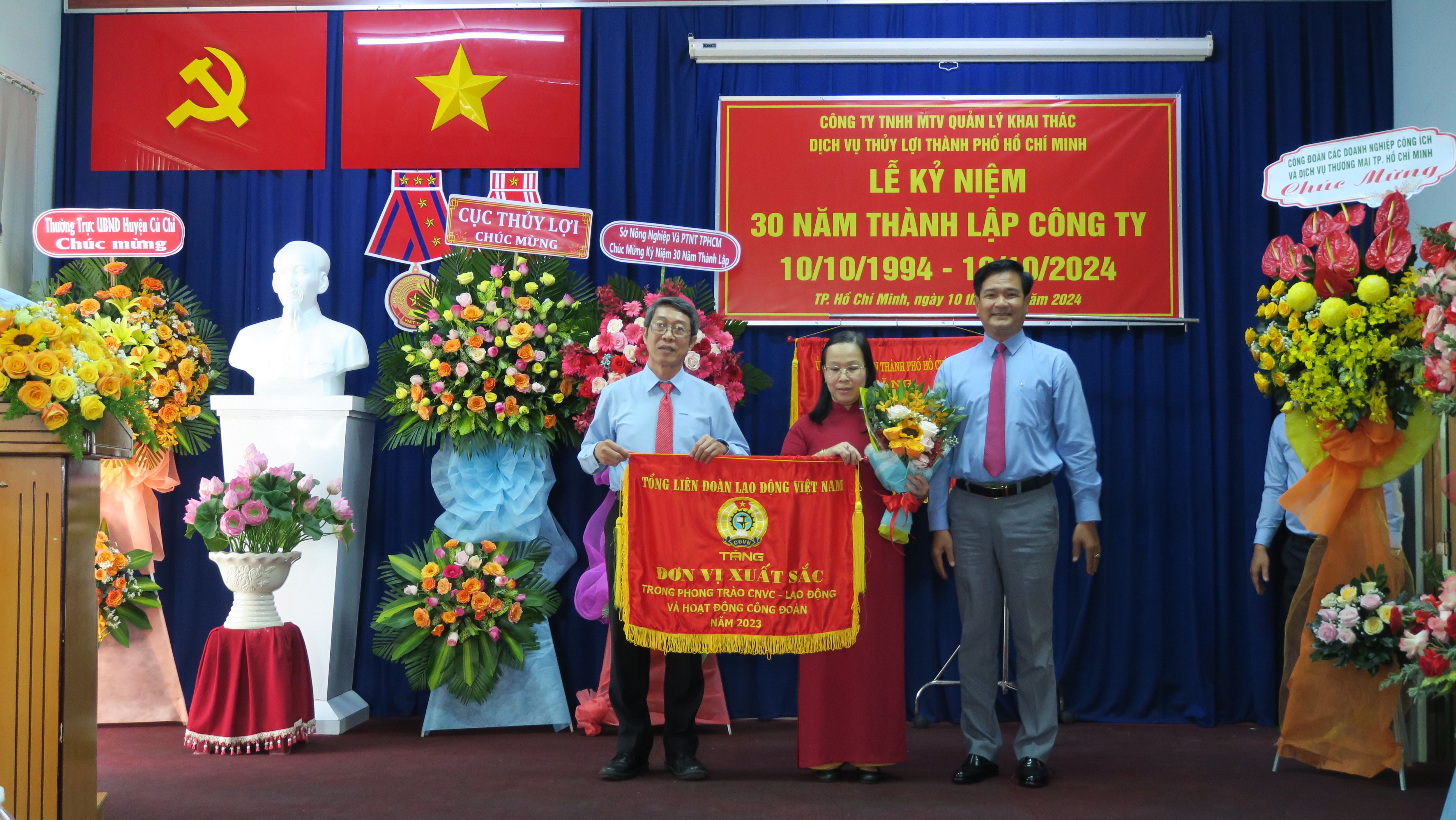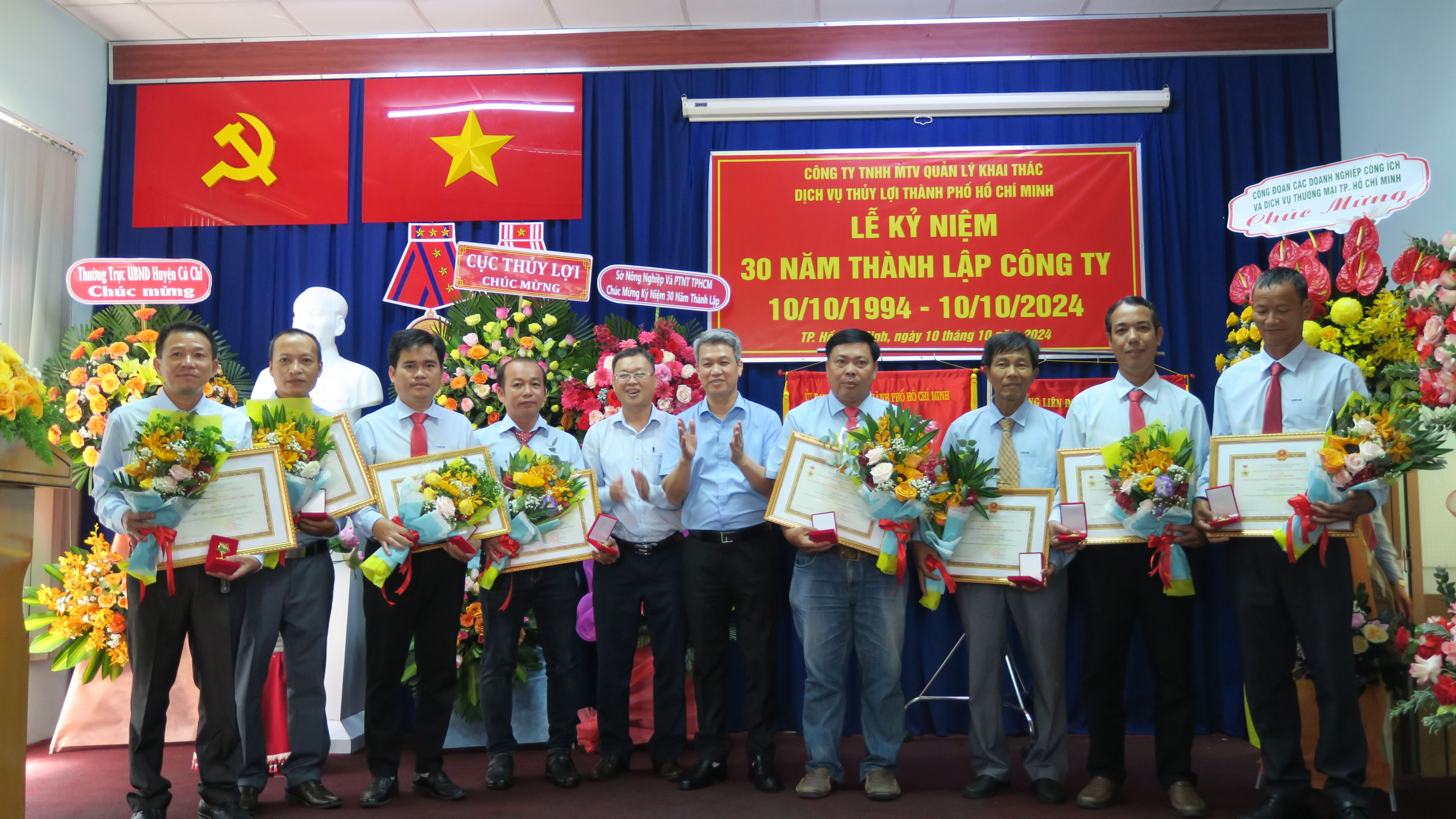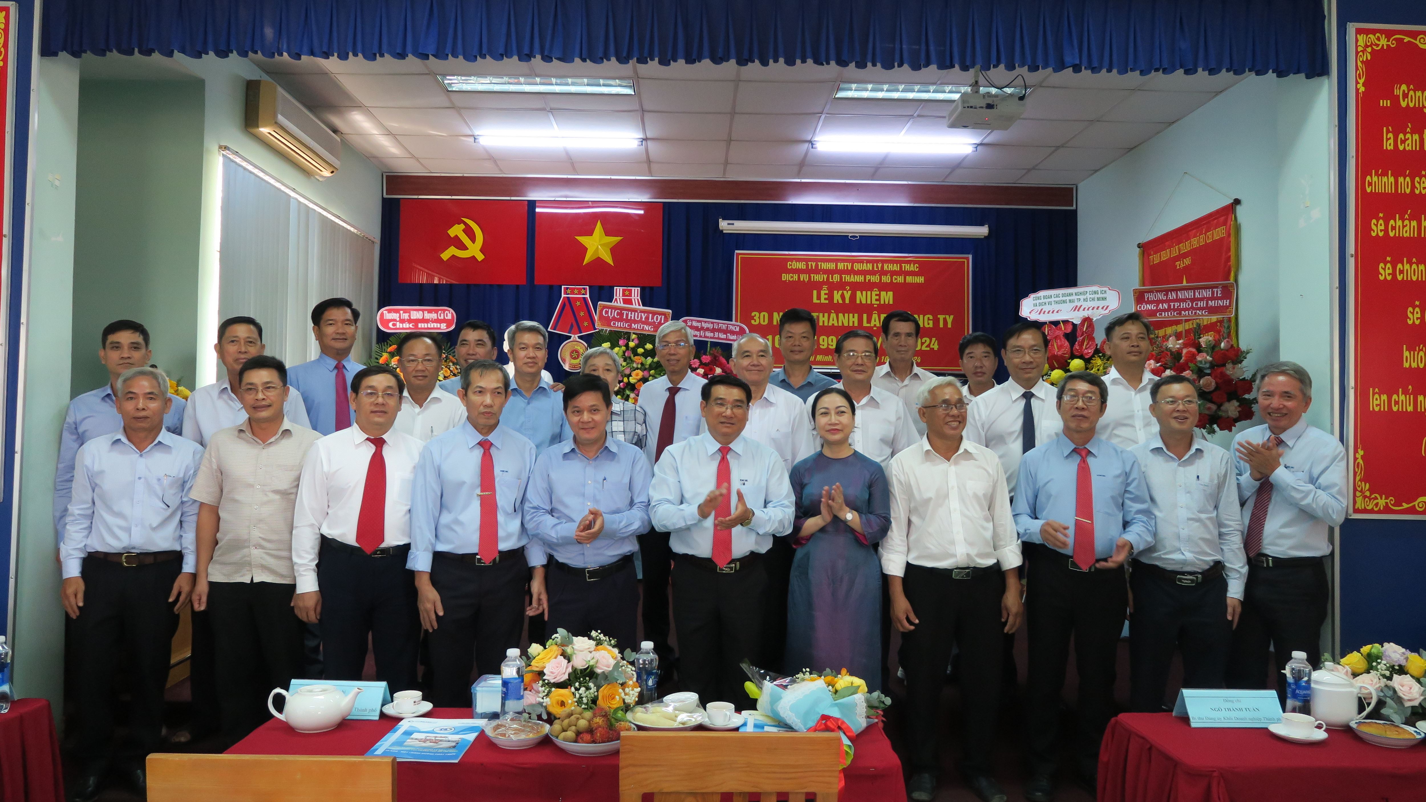 Lễ kỷ niệm 30 năm thành lập Công ty TNHH MTV Quản lý khai thác dịch vụ thủy lợi Thành phố Hồ Chí Minh đã diễn ra vào ngày 10/10/2024, tại trụ sở số 21, Quốc lộ 22, ấp Trạm Bơm, xã Tân Phú Trung, huyện Củ Chi, Thành phố Hồ Chí Minh đã tổ chức Lễ Kỷ niệm 30 năm thành lập Công ty