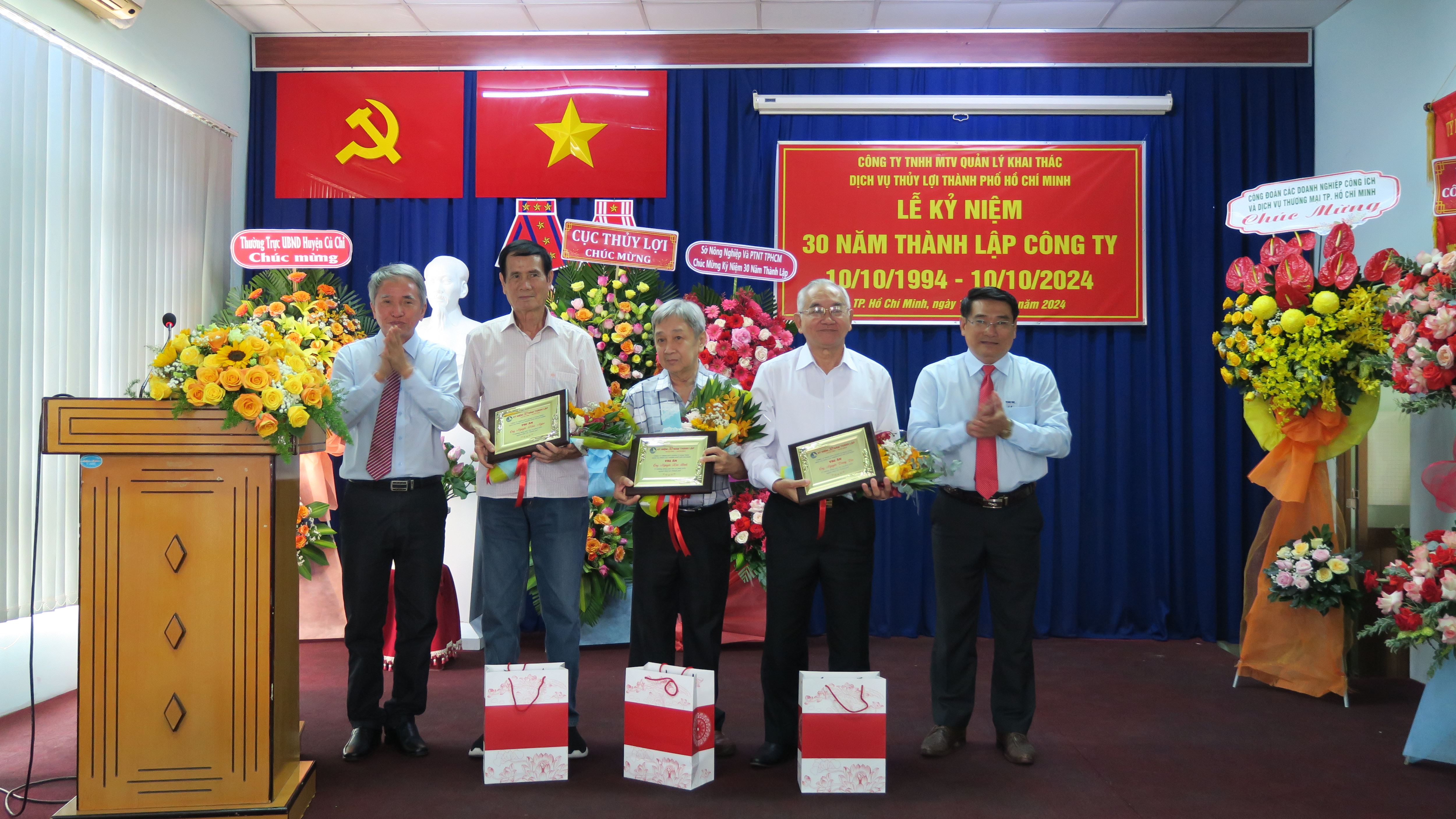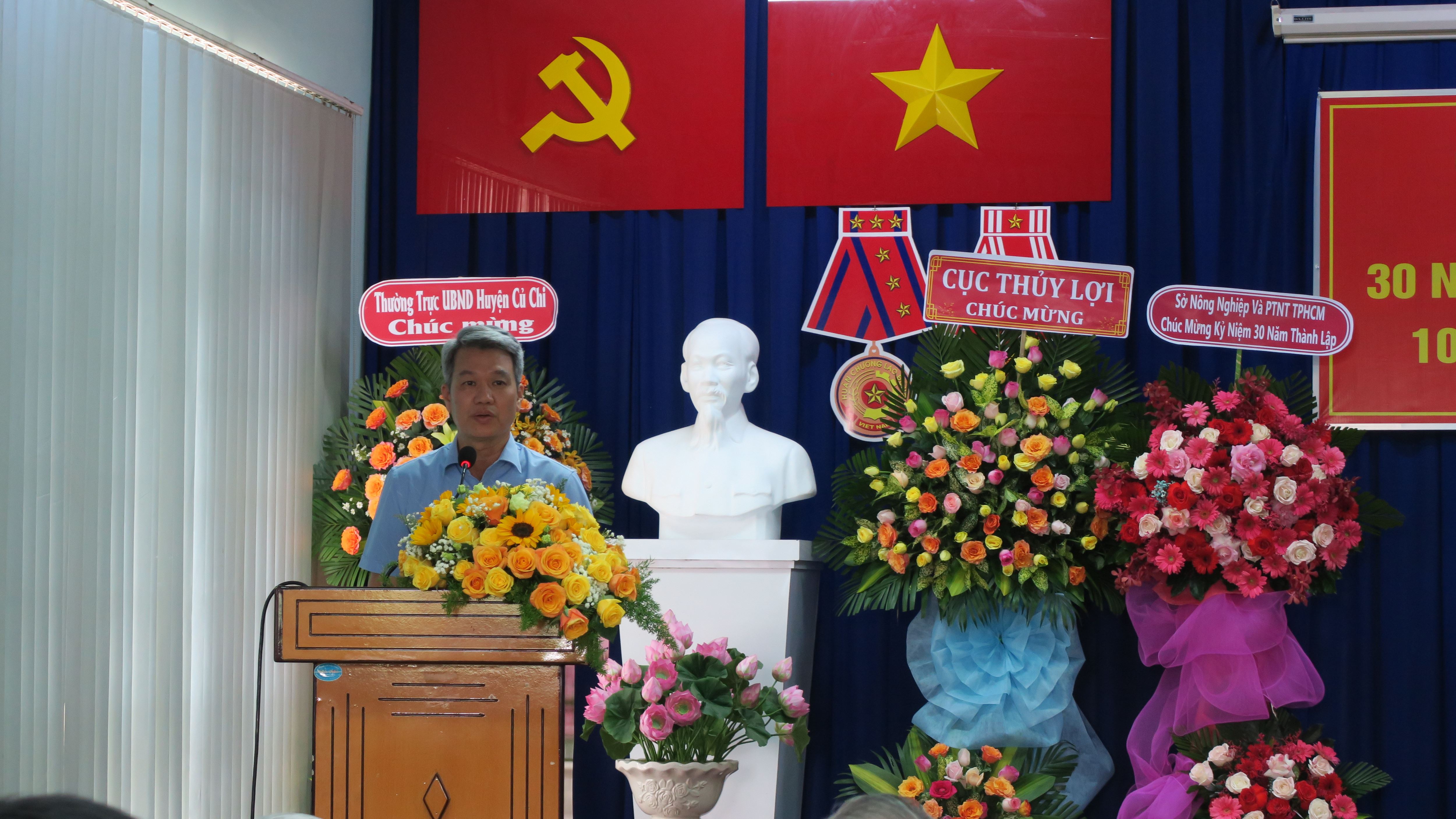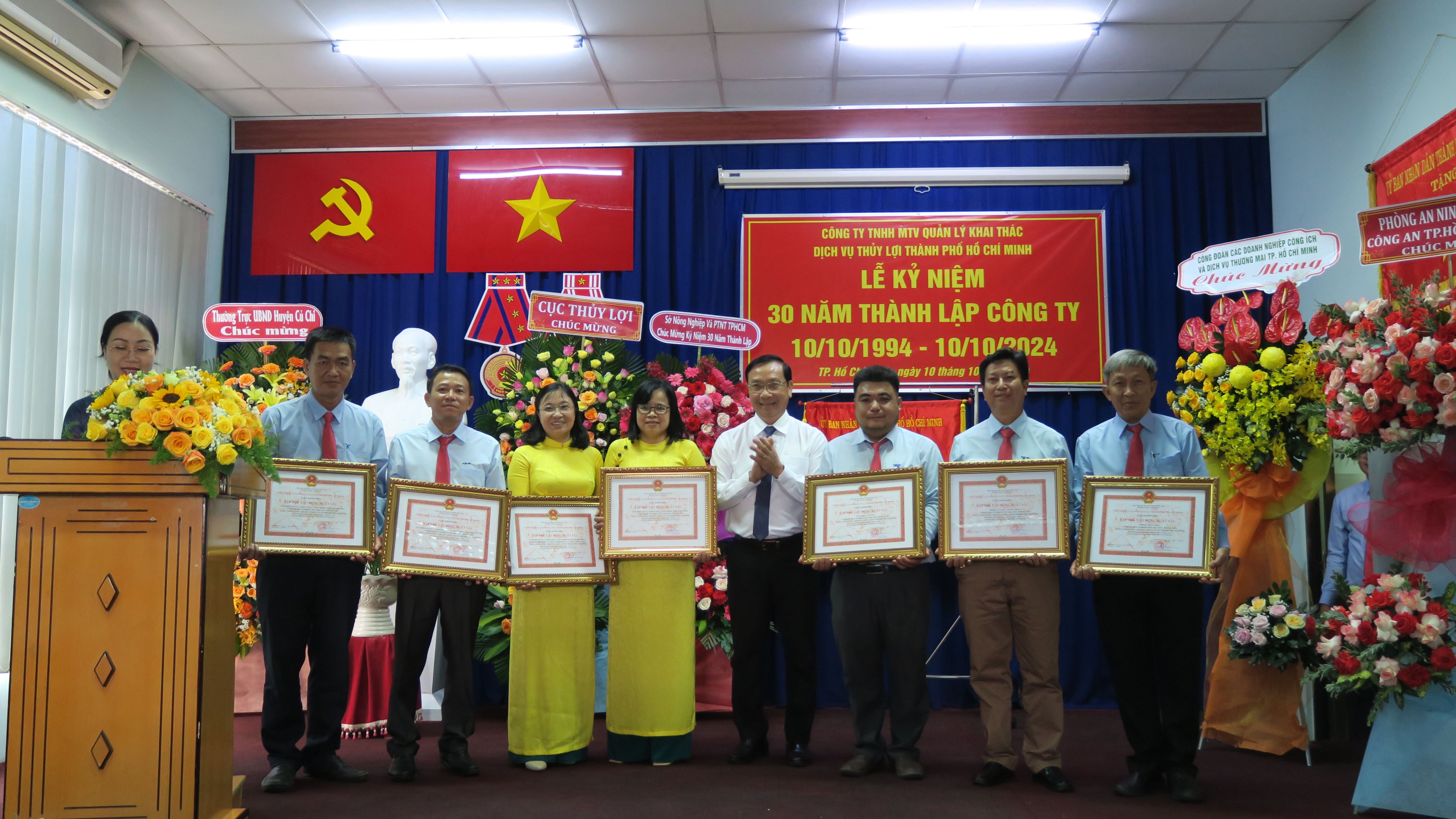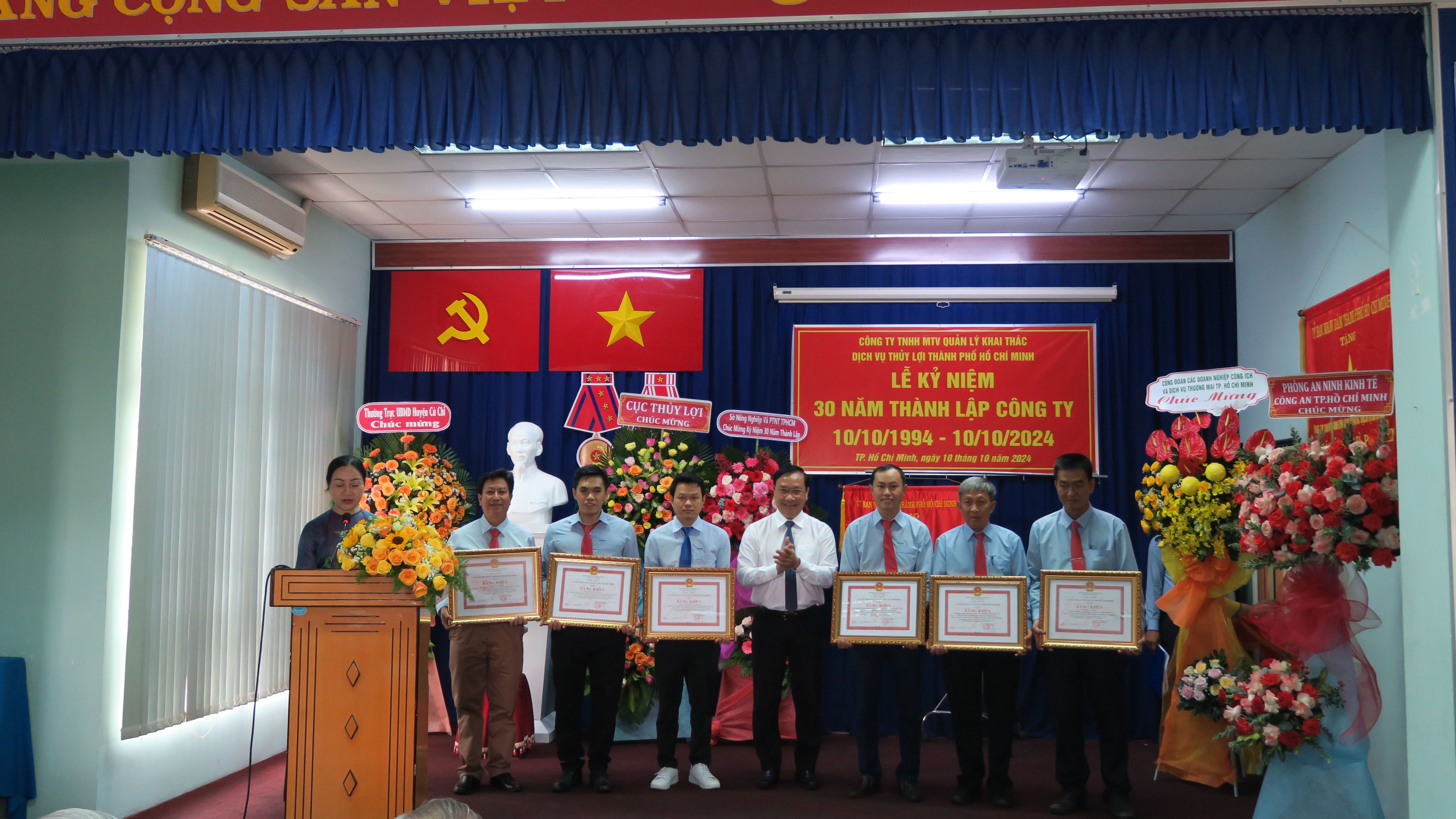 Lễ kỷ niệm 30 năm thành lập Công ty TNHH MTV Quản lý khai thác dịch vụ thủy lợi Thành phố Hồ Chí Minh đã diễn ra vào ngày 10/10/2024, tại trụ sở số 21, Quốc lộ 22, ấp Trạm Bơm, xã Tân Phú Trung, huyện Củ Chi, Thành phố Hồ Chí Minh đã tổ chức Lễ Kỷ niệm 30 năm thành lập Công ty