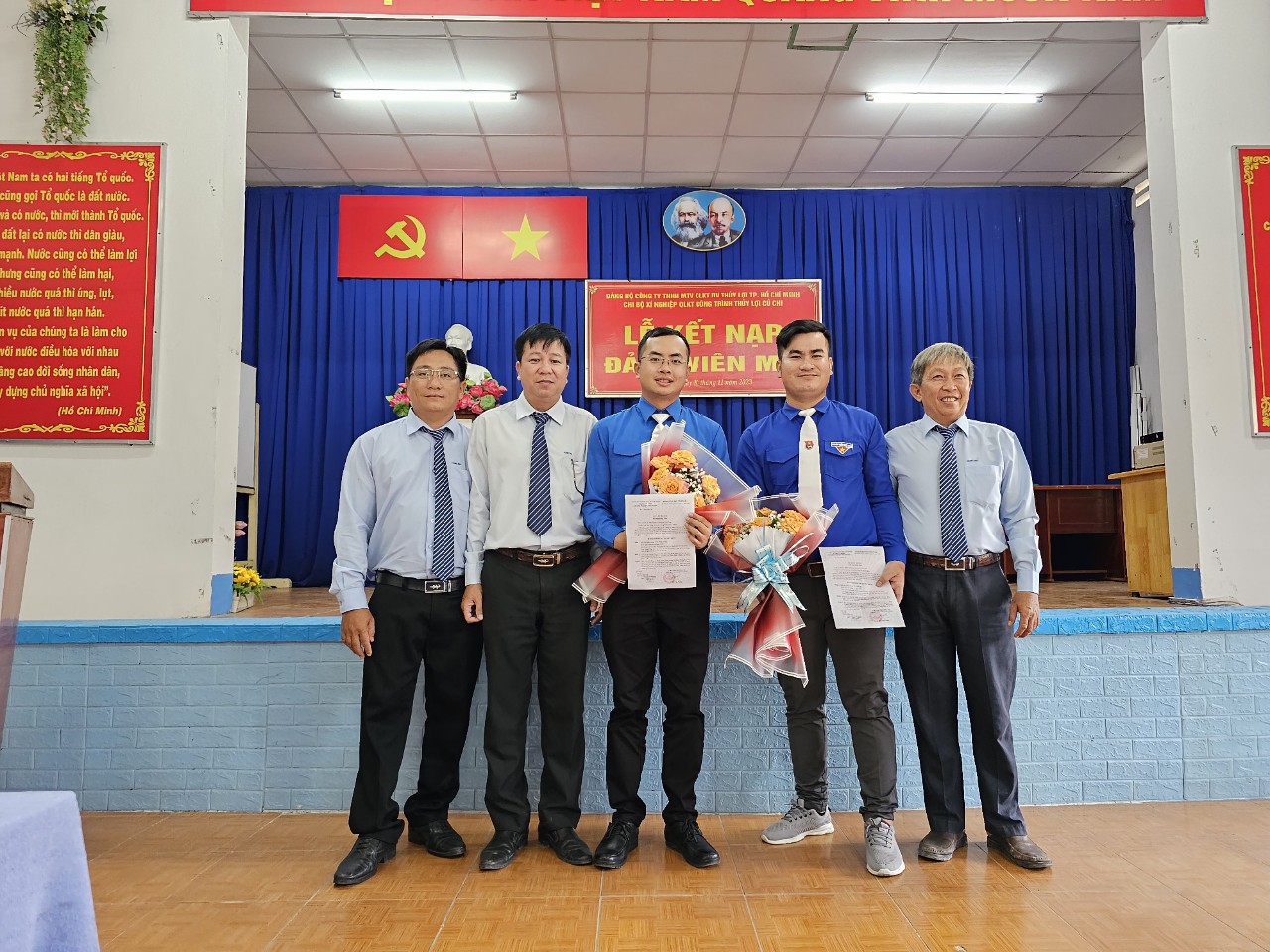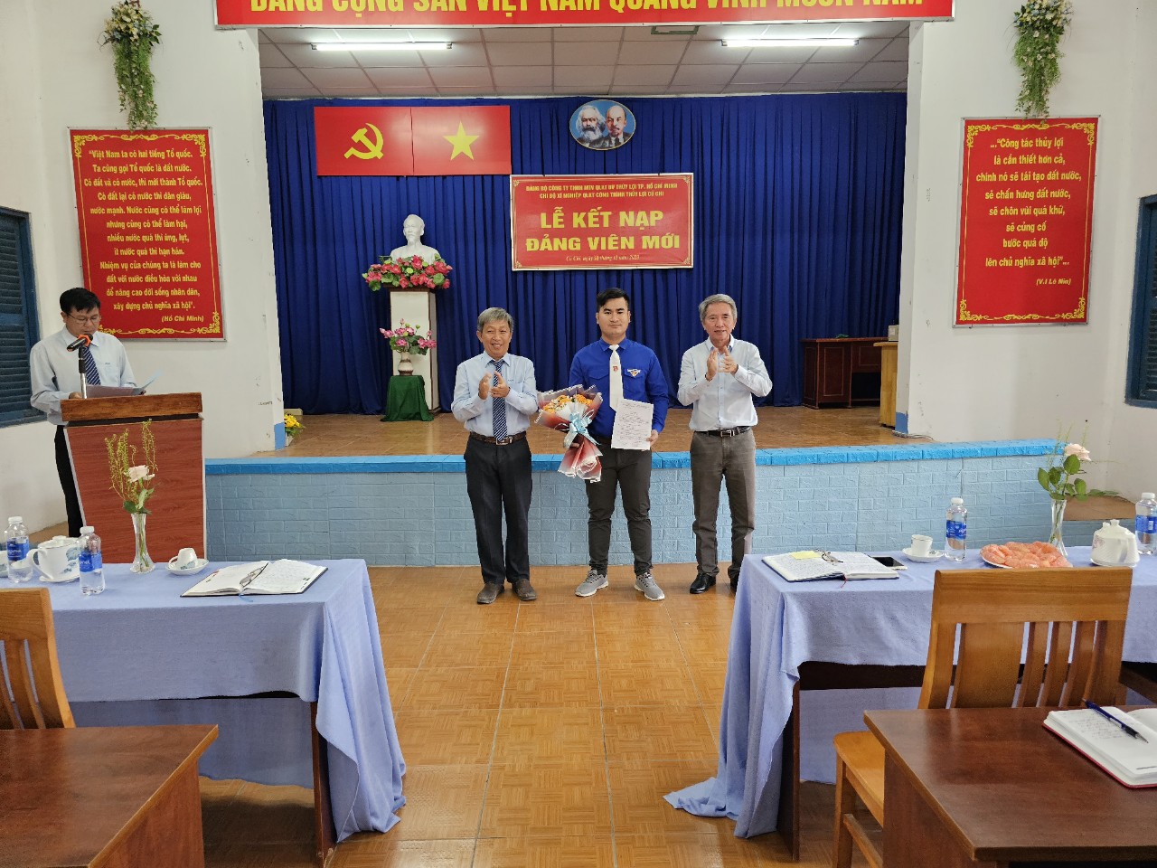Chiều ngày 10/11/2023 vừa qua Chi bộ Xí nghiệp QLKTCT Thủy lợi Củ Chi đã tổ chức Lễ kết nạp Đảng viên mới cho đồng chí Trần Phúc Thiện và đồng chí Võ Quốc Bảo, một số hình ảnh tại Lễ kết nạp đảng viên mới: