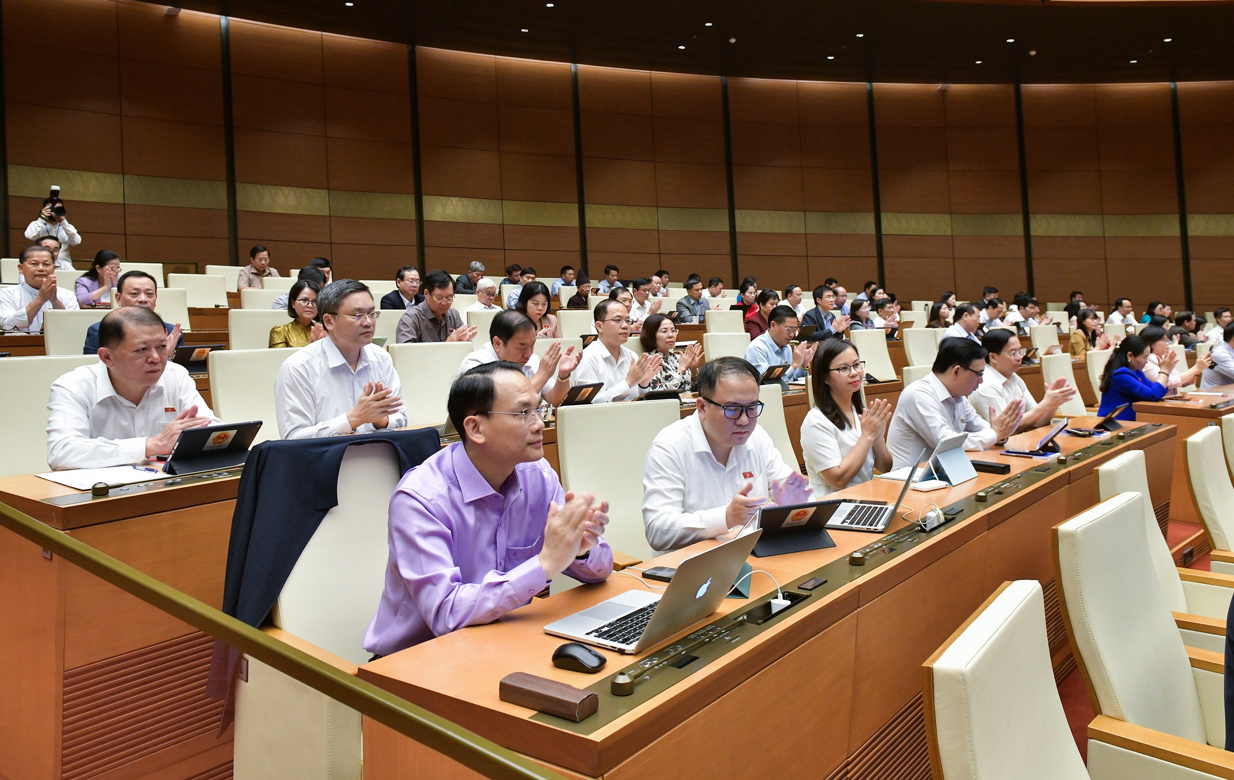 Các đại biểu bấm nút thông qua Luật Tài nguyên nước 2023